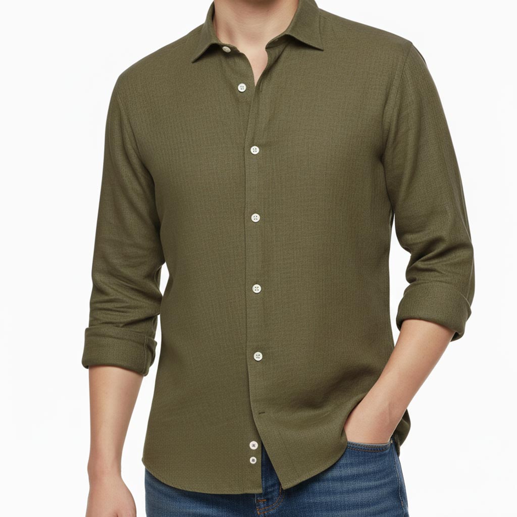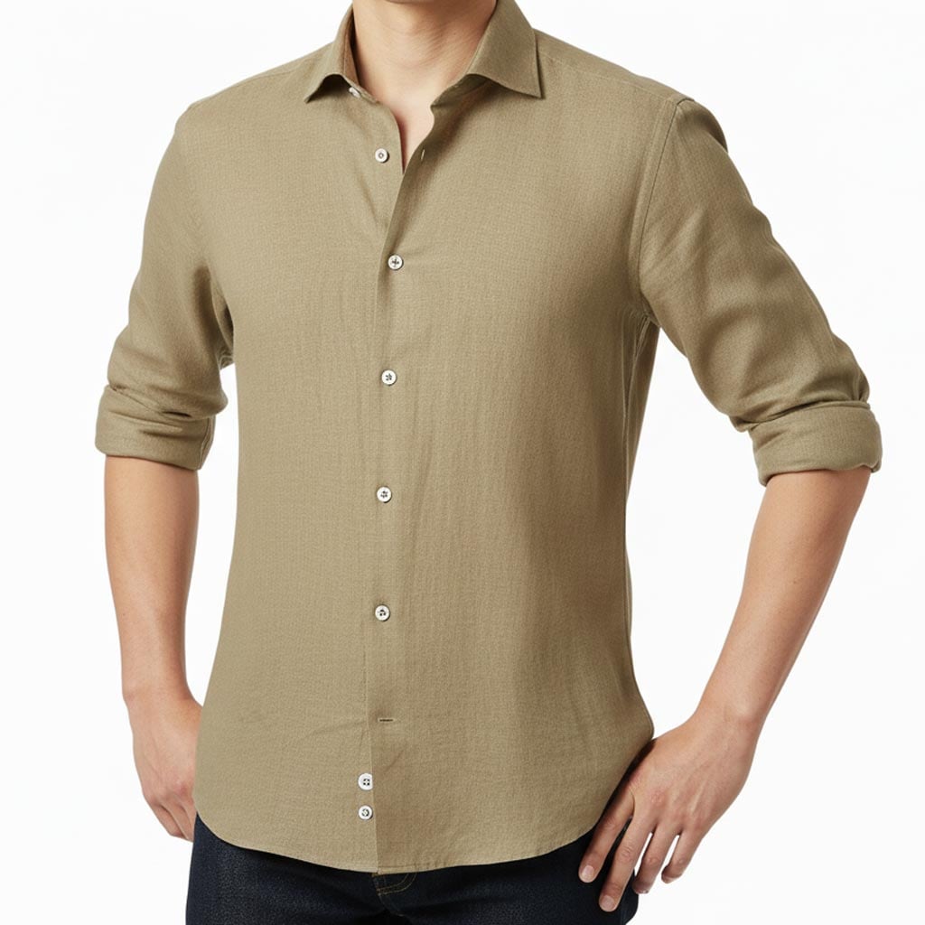 G-stage 長袖シャツ メンズ ホリゾンタルカラー 麻100% カーキ系 1016 M(46)