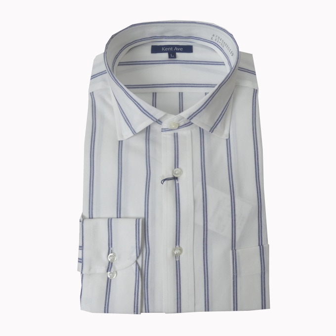 ケントアベニュー(Kent Ave) 長袖ワイドカラー ネルシャツ メンズ 白地にブルーのストライプ 8910 LLサイズ
