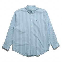 GYMPHLEX ジムフレックス ボタンダウン 長袖 ストライプ ワイドシャツ ブルー×ホワイト
