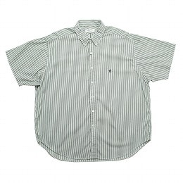 GYMPHLEX ジムフレックス 半袖 レギュラーカラーストライプシャツ グリーン×ホワイトストライプ