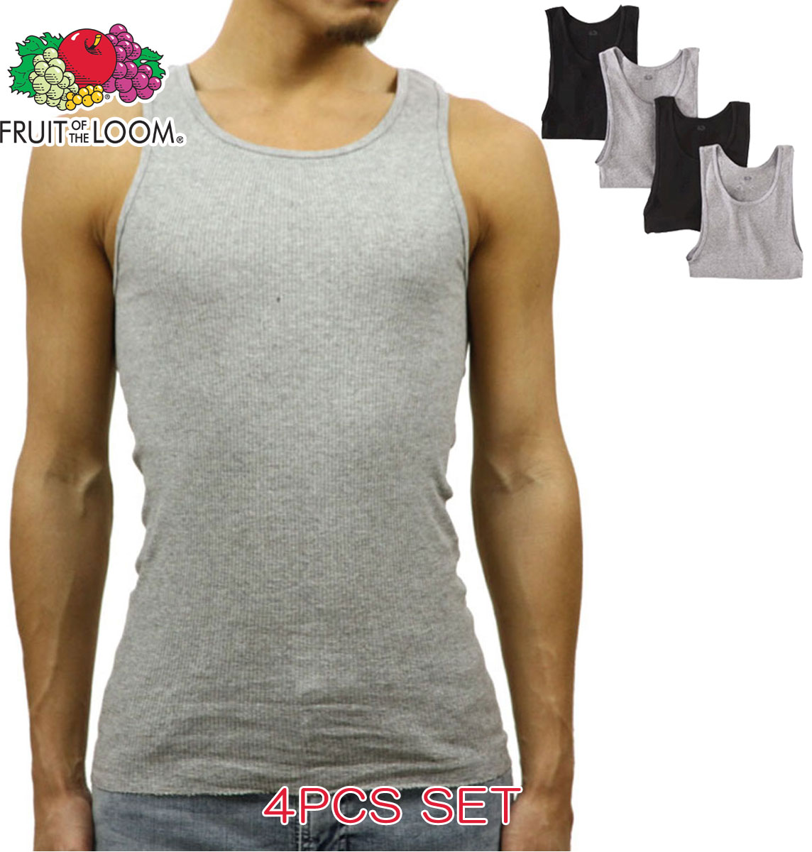 フルーツオブザルーム FRUIT OF THE LOOM 正規品 タンクトップ 4Pack ブラック グレー A42B B1C C...