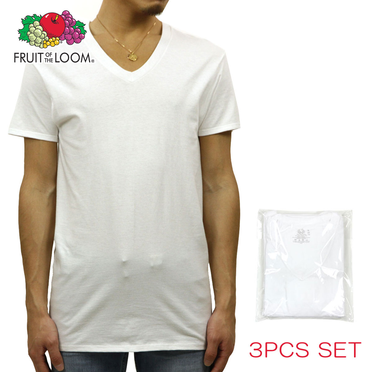 フルーツオブザルーム FRUIT OF THE LOOM 正規品 VネックTシャツ 8Pack ホワイト A42B B1C C7D...