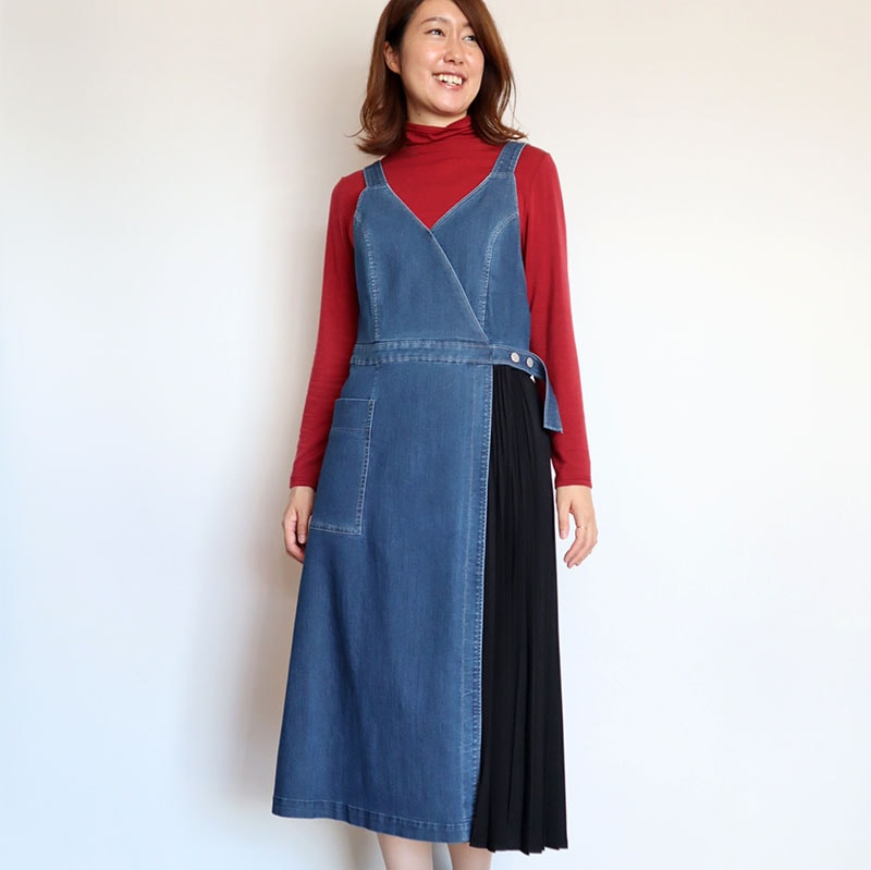 サイドプリーツデニムジャンバースカート/BLUE FRONCE 8184