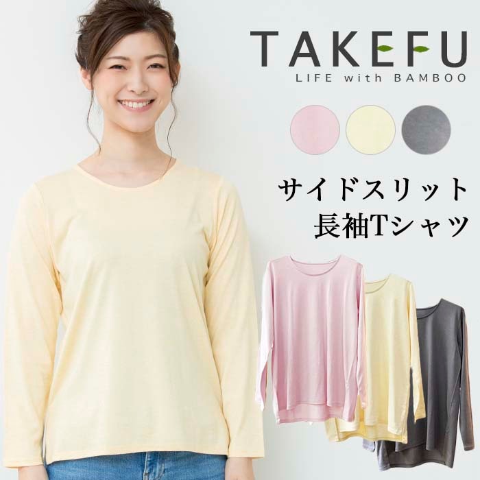 TAKEFU 竹布 サイドスリット長袖Tシャツ(レディース)(メール便使用で送料無料!)