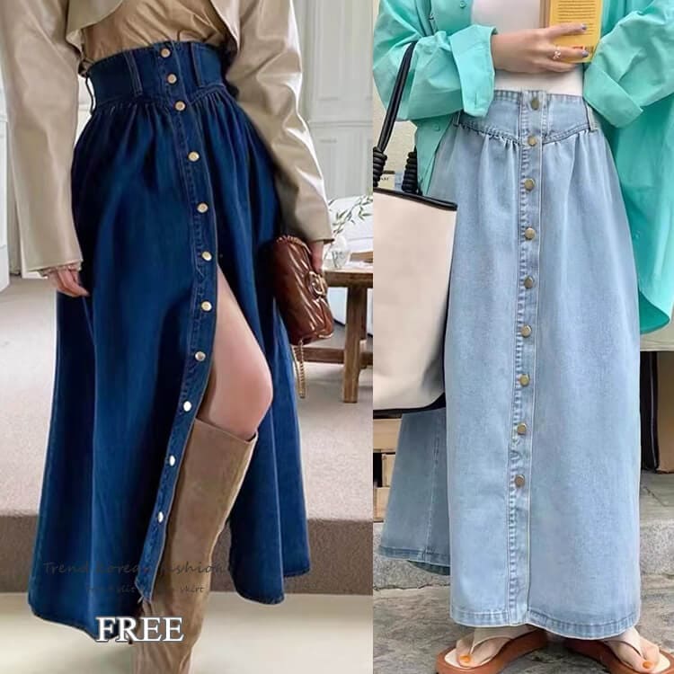 フロントボタン ロング丈 Aライン デニムスカート