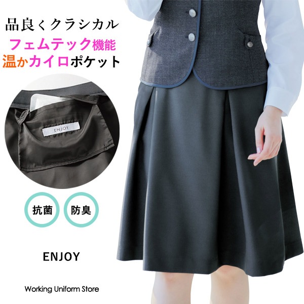 エンジョイ事務服 【カイロポケット付】タックフレアスカート EAS953 ピンヘッドドビークロス【フェムテック】