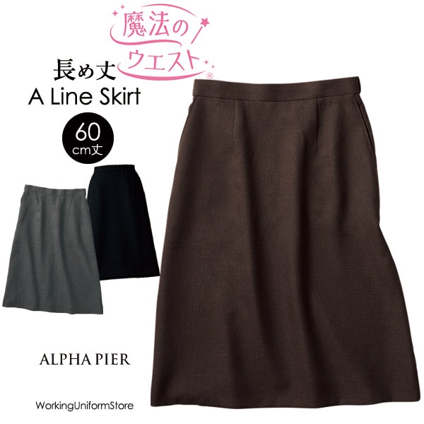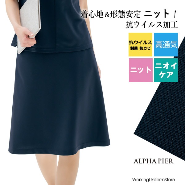 事務服【抗ウイルス/ニット】春夏長め丈Aラインスカート AR3611 アルファピア コンフォータブルニット