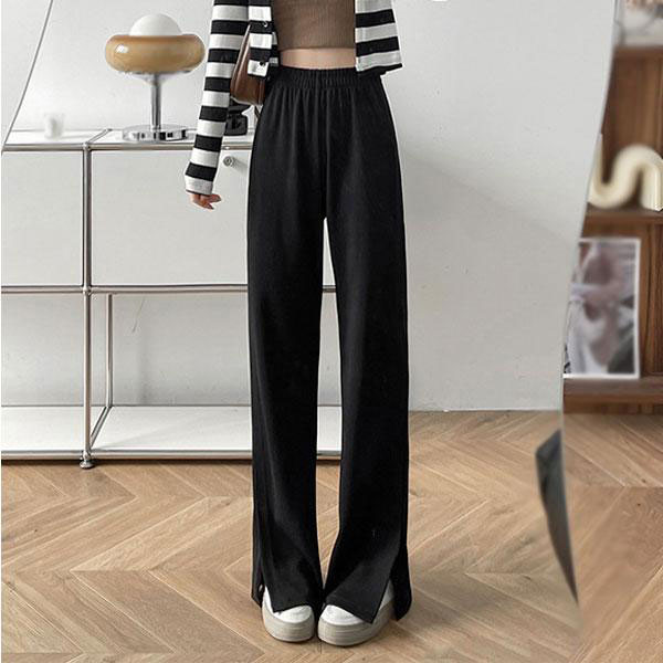 レディース ワイドパンツ サイドスリット ロング丈 ゆったり ウエストゴム ハイウエスト パンツ ボトムス カジュアル おしゃれ ...