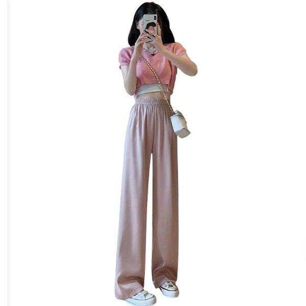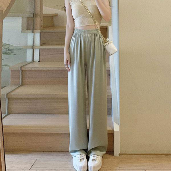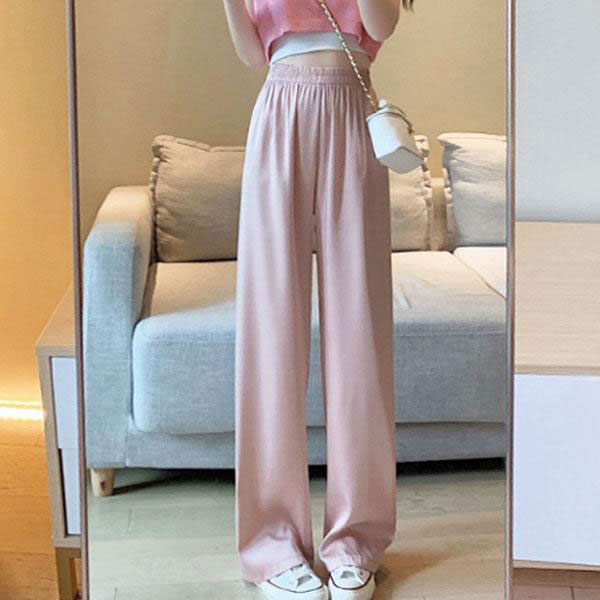 レディース ワイドパンツ 159cm以下丈 アイスシルク ゆったり ウエストゴム パンツ 長ズボン ロング丈 カジュアル おしゃれ...