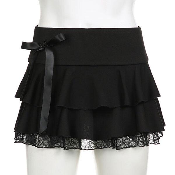 レディース ミニスカート フリル レース リボン ティアードフリル スカート ハイウエスト かわいい おしゃれ