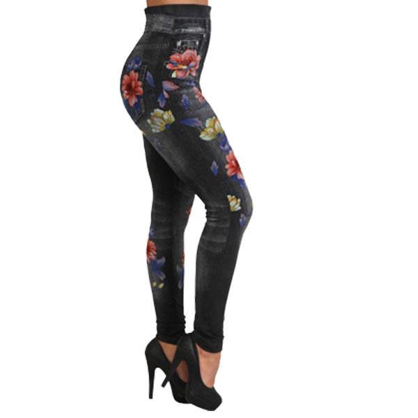 レディース デニム風 花柄 レギンス ワンサイズ 2カラー ストレッチ素材 オールシーズン おしゃれ 伸縮性 ダンス ヨガ 動きや...
