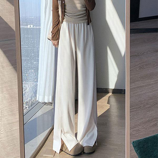 レディース ワイドパンツ サイドスリット ウエストゴム ゆったり ハイウエスト ロング丈 パンツ ボトムス おしゃれ 春 夏