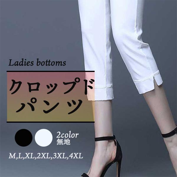 【セール】【即納】クロップドパンツ レディース 7分丈 無地 パンツ ボトムス スリット入り