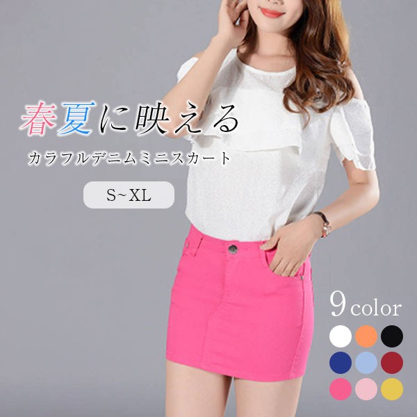 【セール】カラフルデニム ミニスカート タイトスカート レディース ウエスト ヒップライン ミッドウエスト カジュアル シルエット...