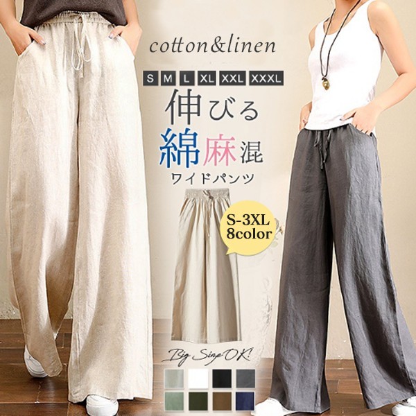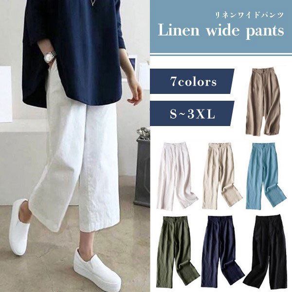 【セール】【即納】レディース ボトムス リネンワイドパンツ ストレートパンツ 麻混素材 カジュアル リネン パンツ ワイドパンツ ...