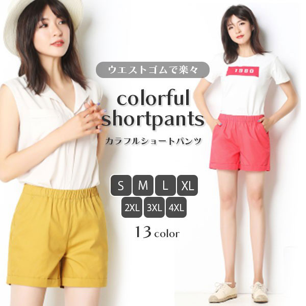 【セール】レディース ショートパンツ ハーフパンツ ウェストゴム シンプルデザイン カジュアル 着回し 夏アイテム