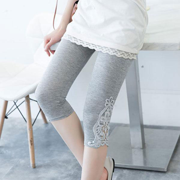 レディース 花柄 レース 7分丈 裾 レギンス レギパン パンツ インナー ストレッチ性 薄手 生地 柔らかい フェミニン 華やか...