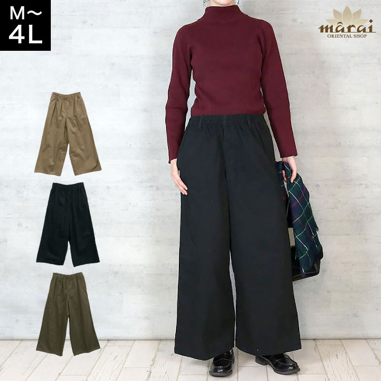 ワイドパンツ 綿100% ツイル レディース メンズ 大きいサイズ M L LL 3L 4L ウエストゴム ゆったり 体型カバー ...