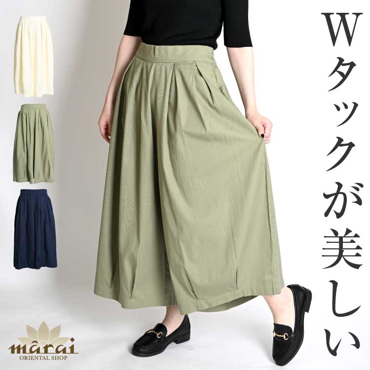 パンツ レディース ボトムス スカーチョ ガウチョ スカート見え楽ちんパンツ。ウエストタックギャザーパンツ ワイドパンツ フレアパ...