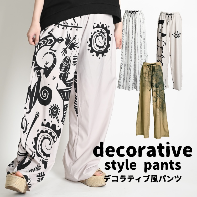デコラティブ風パンツ ワイドパンツ メンズ レディース 春 夏 ワイド パンツ 柄 総柄 ボトムス エスニック アジアン ファッシ...