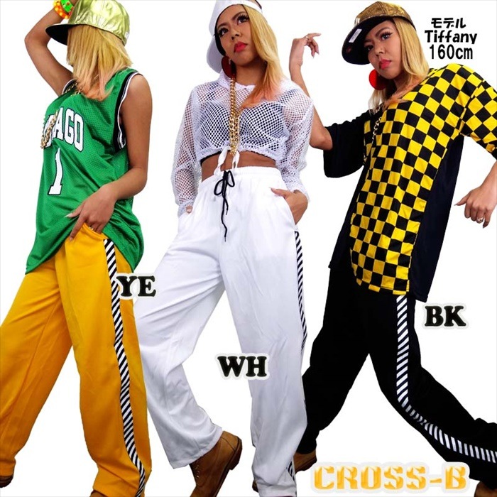 A0044-ネオンカラージッパー付ブラックロングパンツ