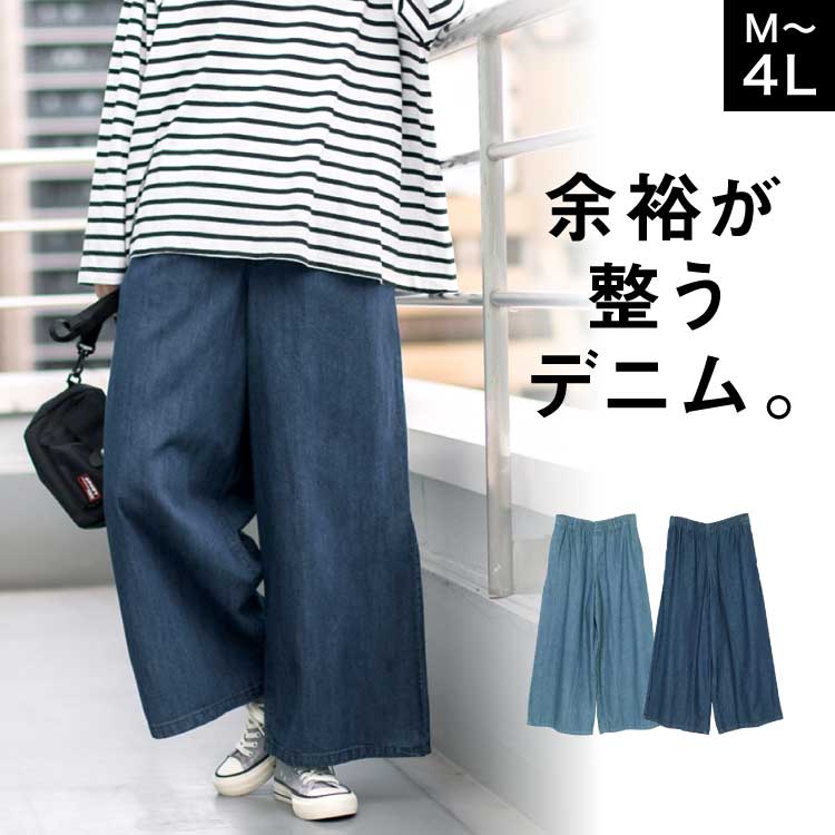 デニムパンツ ワイドパンツ レディース 春 夏 秋 冬 パンツ デニム ワイド 大きいサイズ ゆったり ウエストゴム 楽ちん ボト...