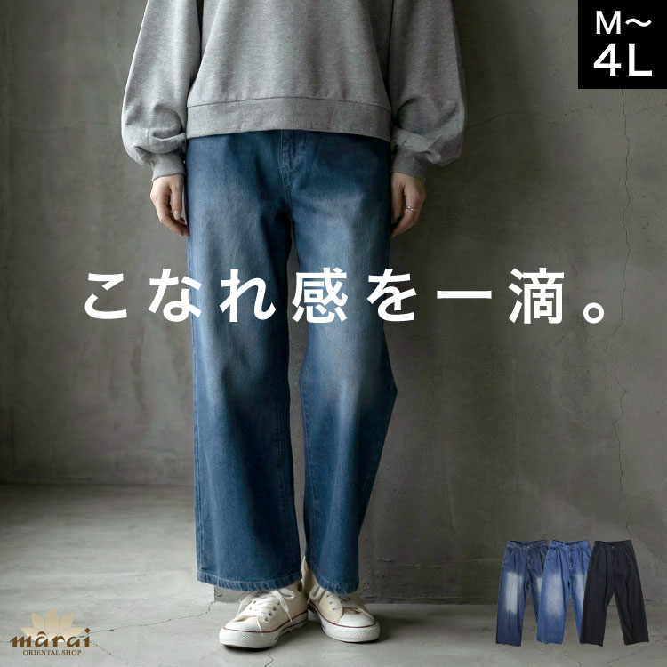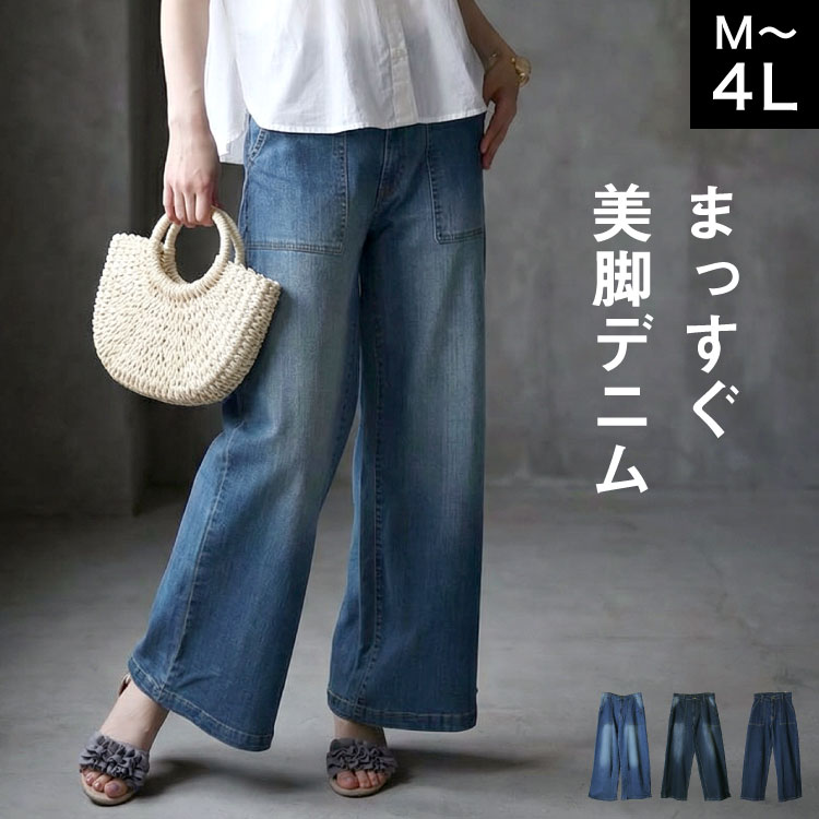 デニム パンツ ワイドパンツ レディース 大きいサイズ ストレートパンツ ゆったり ボトムス ジーンズ ジーパン 体型カバー ロン...