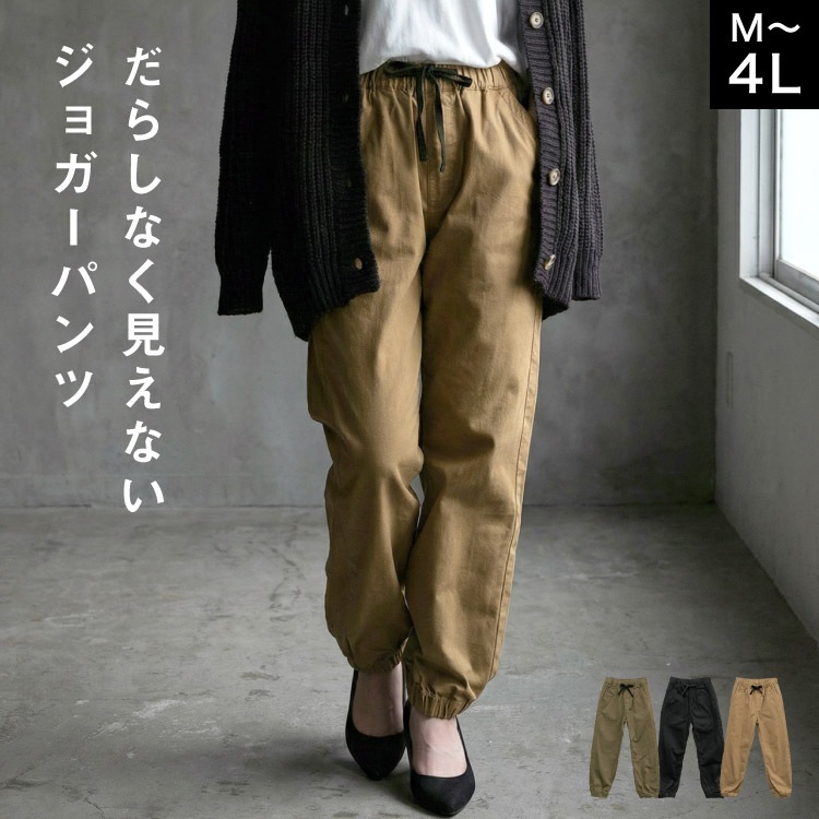 ジョガーパンツ レディース 綿100% ツイル パンツ 春 大きいサイズ ゆったり テーパード 裾ゴム ウエストゴム チノパン コ...