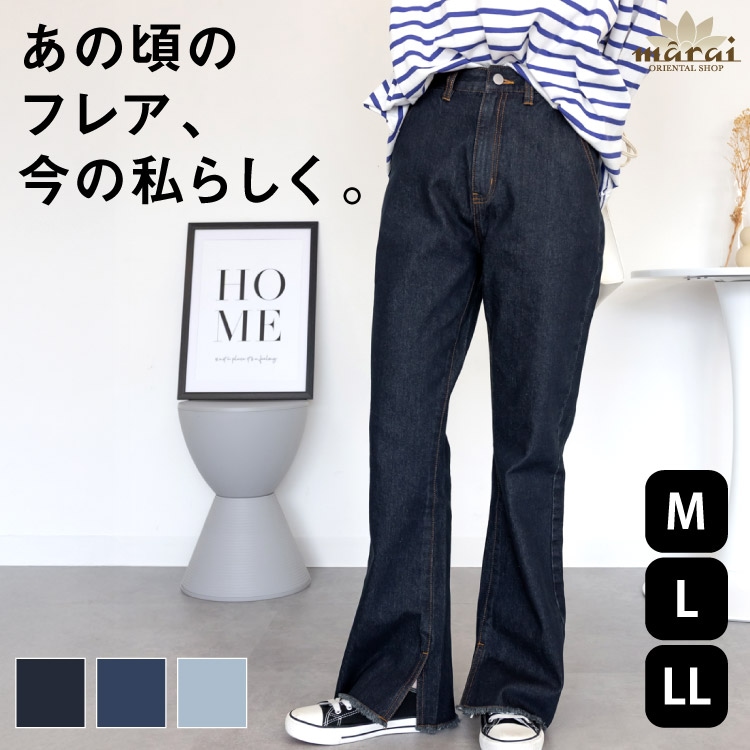 デニム レディース メンズ フレアパンツ ワイドパンツ スリット おしゃれって、実は毎日のことなんだ。デニム裾ベンツワイドパンツ ...