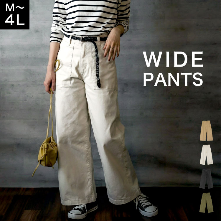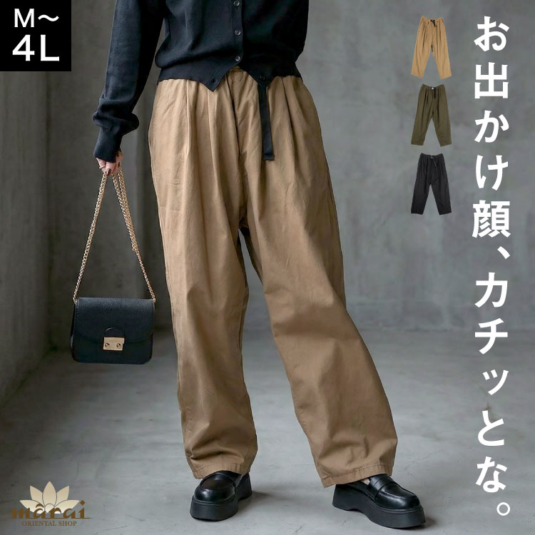 ワイドパンツ チノパン レディース 大きいサイズ コットン100% ツイル ビッグタック サーカスパンツ ボトムス ゆったり 体型...