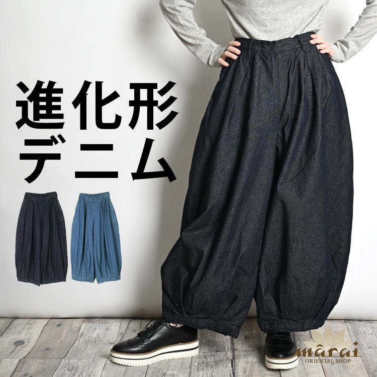 デニム カーブパンツ レディース ワイドパンツ ジーンズ コクーンパンツ サーカスパンツ ボトムス 春 夏 秋 冬 綿100% ゆ...