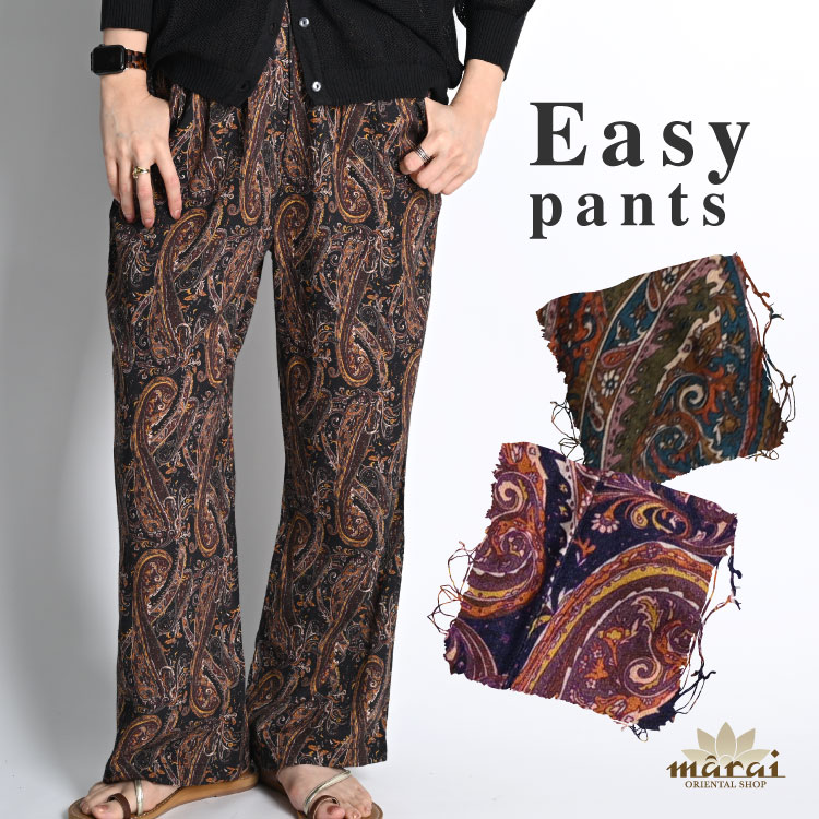 ワイドパンツ レディース 唯一無二の存在感。ペイズリー柄ワイドパンツ ロングパンツ ボトムス 柄 総柄 ストレートパンツ 柄パンツ...