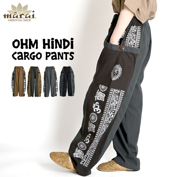 カーゴパンツ サルエルパンツ メンズ レディース カルチャーミックスな着こなし。オームヒンディーカーゴパンツ ワイドパンツ ボトム...