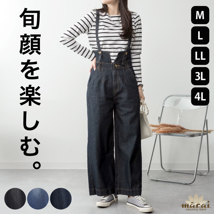 【3-10日で発送】 デニムサロペット レディース ゆったり テーパードシルエット 体型カバー 大きいサイズ ラフに着ても上品見え...