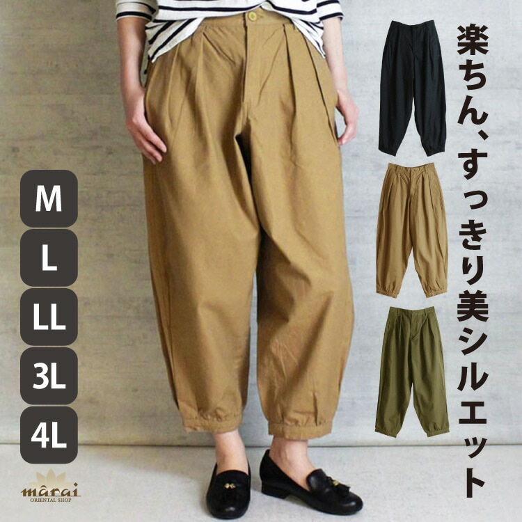 テーパードパンツ レディース メンズ 綿 コットン ストレスフリーな毎日パンツ。タック入りゆったりテーパードパンツ アラジンパンツ...