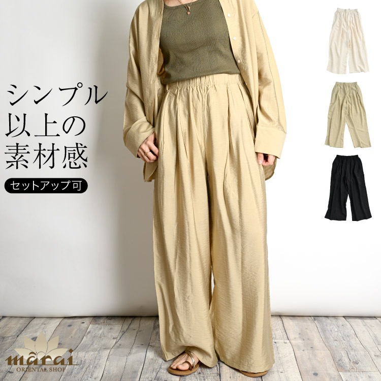 パンツ レディース ボトムス シンプル以上を知る。ビンテージクロスワイドパンツ フレアパンツ タックパンツ きれいめ こなれ感 無...