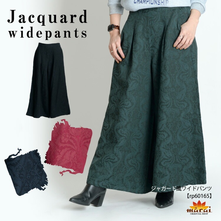 理想の高級感漂うジャカード風ワイドパンツ