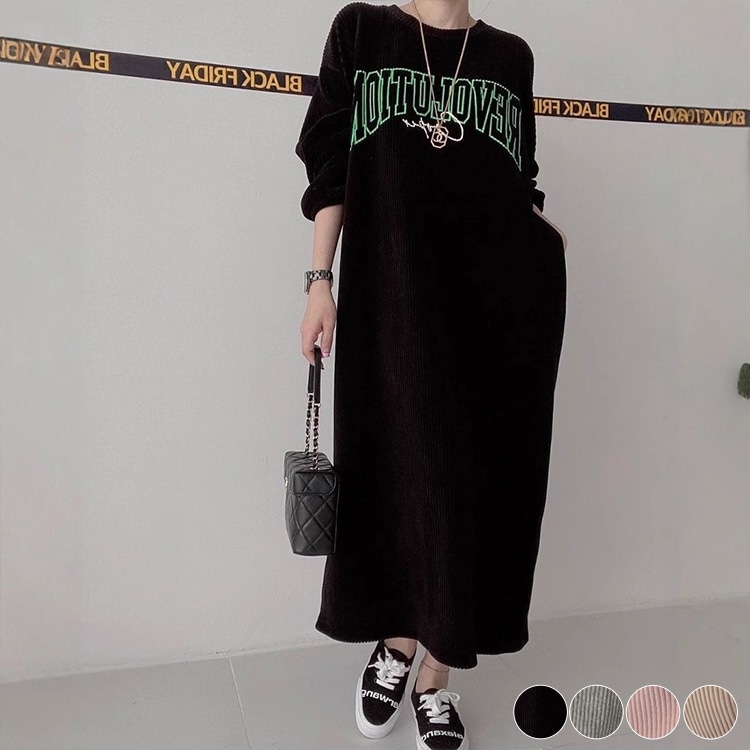 ぽわん袖 ゆったり コーデュロイ ロングワンピース