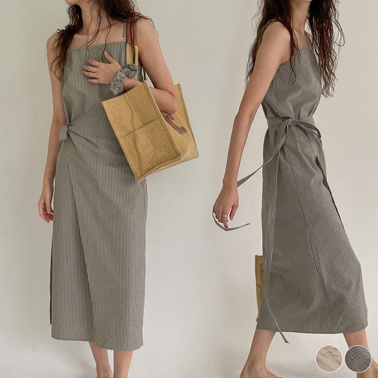 ストライプ柄 ミモレ丈 ラップ キャミソールワンピース