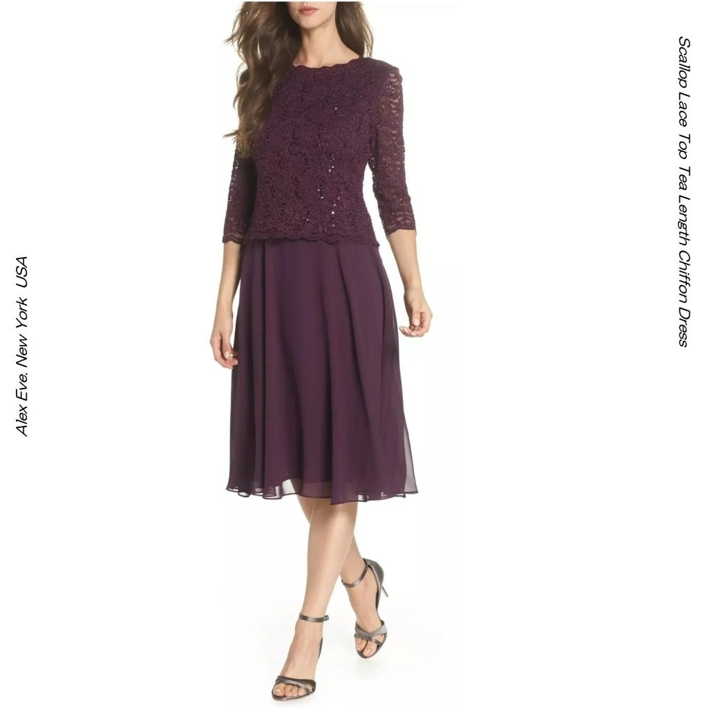 インポートドレス大阪 ストレッチレースドレスフレアースカートドレス レースミディドレス plum 紫色ドレス ティーレングス Aラ...