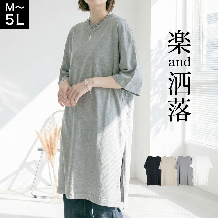 チュニック ワンピース レディース 春 夏 秋 5分袖 半袖 カットソー サイドスリット 大きいサイズ ゆったり 体型カバー おし...