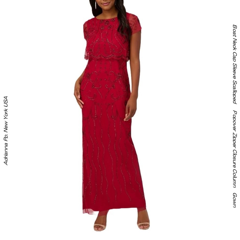 半袖ドレス シャンソン クランベリーレッド 手刺しビーズドレス ビジュエンブロイダリー ハンドメイド ニューヨークブランド 声楽 ...