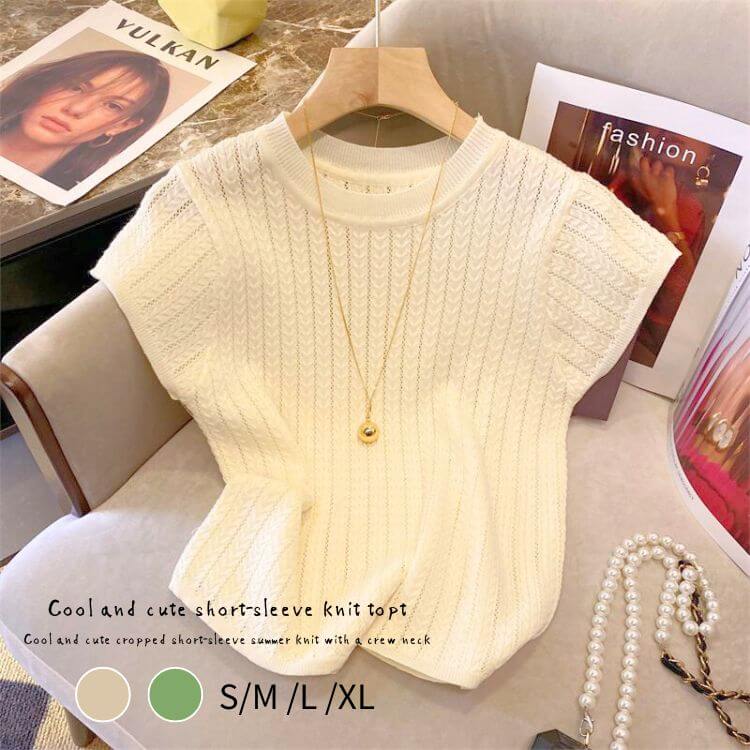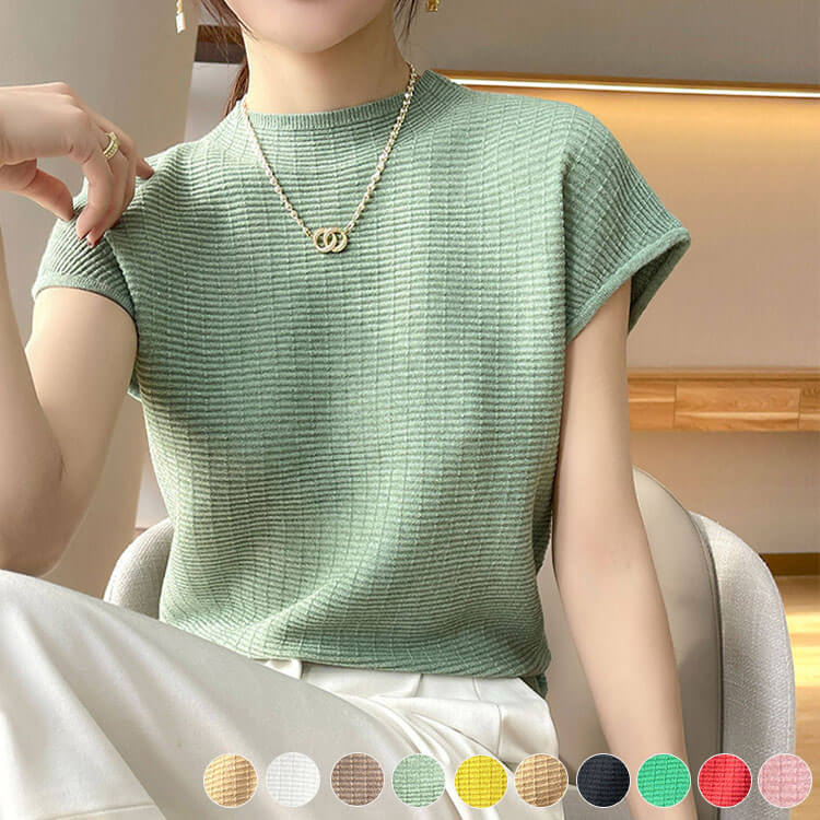 太リブ サマーニット フレンチスリーブ 半袖 トップス