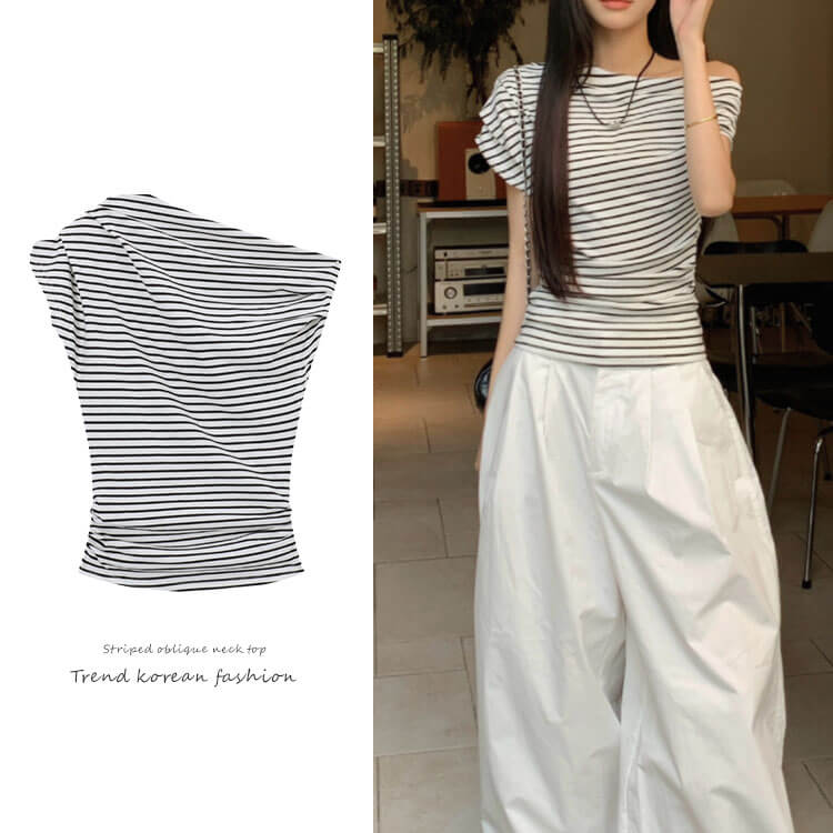 肩見せボーダー Tシャツ レディース 半袖 オフショル