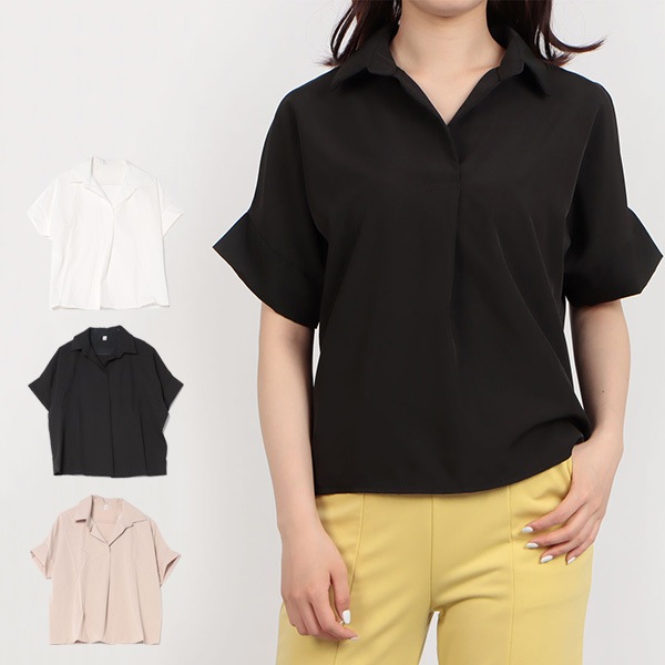 [FACE MIX] FB4025L レディスウイングカラー 長袖ブラウス
