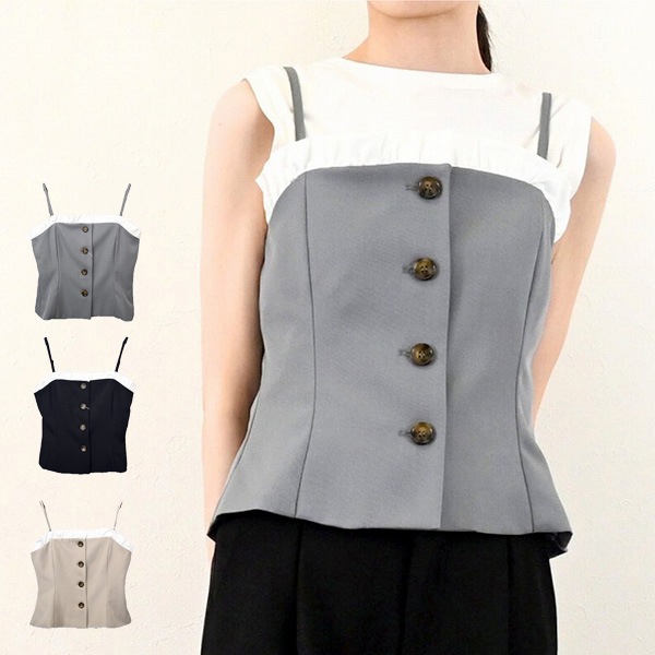 リネンタッチ×ブロードフリル付きビスチェ