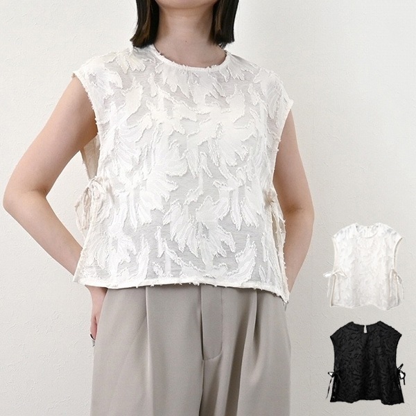 フリンジジャガードサイドリボンブラウス