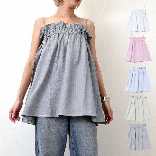 サッカーストライプギャザーキャミソール