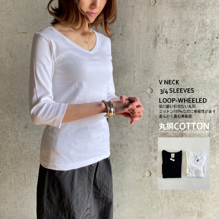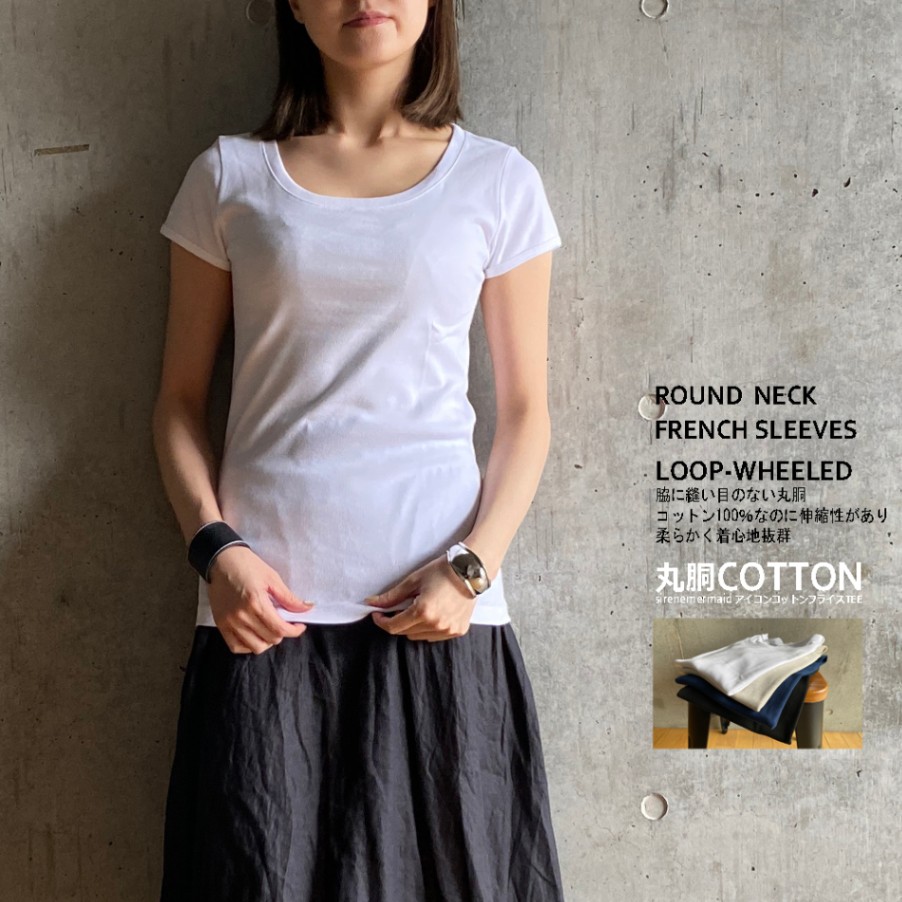 丸胴コットンフライス_ラウンドネックキャップスリーブ