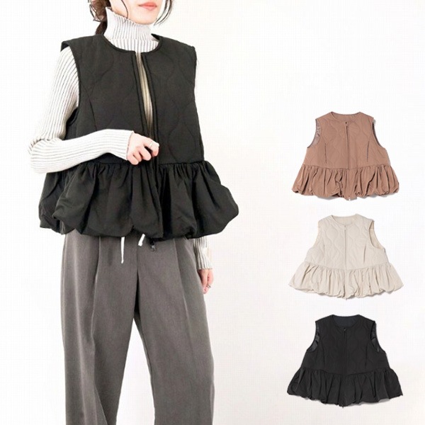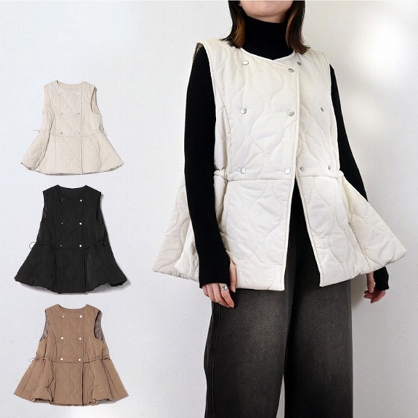 タフタキルティングペプラムベスト